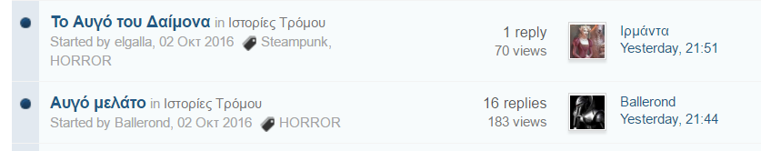 Popular Post Ballerond Posted October 2, 2016 Popular Post Share Posted October 2, 2016 (edited) Όνομα Συγγραφέα: ΓιάννηςΕίδος: Τρόμος; Μαύρη κωμωδία και τρόμος; Λίγο απ'όλα με τζατζίκι;Βία; Ω ναιΣεξ; Μπα, που να προλάβω σε 70 λεπτάΑριθμός Λέξεων: 1590Αυτοτελής; Ε ναι (τι όχι;)Σχόλια: Είναι η συμμετοχή μου για τό Come Write-in του Φαντάστικον 2016 με θέμα "αυγο". Δεν κέρδισε τίποτα αλλά το διασκέδασα πάρα πολύ κι είπα να το μοιραστώ μαζί σας. Το έγραψα σε 70 λεπτά κι αποτελεί καφρίλα horror/humour φάση. Λίγα λόγια για το setting για να το καταλάβετε. Είμασταν σε μία αίθουσα 18 άτομα για να γράψουμε. Τα άτομα που περιγράφω μέσα υπήρχαν όντως στην αίθουσα. Ο απέναντι, η διπλανή, η πίσω κτλ. όλα ήταν εκεί την ώρα που το έγραφα. Ελπίζω να το διασκεδάσετε ;) Ναι ωραία, και τώρα; Μαζευτήκαμε εδώ δεκαοχτώ άτομα, και μας είπαν ότι πρέπει να γράψουμε. Μας έδωσαν και διορία λέει, 75 λεπτά. Και κάθομαι τώρα εγώ και κοιτάω τον υπολογιστή, ο υπολογιστής κοιτάει εμένα και περιμένουμε κάποιος να κάνει την πρώτη κίνηση. Ή εγώ να ξεκινήσω την ιστορία ή αυτός να κλείσει από βαρεμάρα. Η διπλανή μου γράφει ασταμάτητα εντωμεταξύ, κλικ - κλικ συνέχεια, τι διάολο έχει μέσα στο κεφάλι της; Κοιτάω κι έχει γράψει μισή παράγραφο. Καλά κάστανα. Ένα παλικάρι απέναντι μου φοράει ακουστικά, κουνάει τα χέρια στον αέρα σαν μαέστρος και φαντάζομαι εγώ, μέσα στα αυτιά του να παίζουν κονσέρτα και συμφωνίες με βιολιά και βιόλες. Ή μπορεί να ακούει και Καζαντζίδη, ποιος ξέρει. Ότι τον φτιάχνει τον καθένα. Έχουν περάσει δέκα λεπτά κι εγώ φλυαρώ πάνω σε έναν κειμενογράφο κι ευτυχώς δεν κοιτάει κανείς να δει τι βλακείες γράφω. Ή κοιτάει; Ο δεξιός ώμος μου με βαραίνει απότομα γαμώτο, ένα μούδιασμα απλώνεται στο μπράτσο. Σαν να έπεσα σε λήθαργο και να έριξα όλο το βάρος μου πάνω του. Γυρνάω και τι να δω; Κι άλλη κοπέλα με ακουστικά! Καλά τι γίνεται, τους λένε κρυφά ιδέες από το πάνελ; Αυτή χαμογελάει περίεργα όμως. Τέρμα το κωλοβάρεμα, ας σοβαρευτούμε. Ήρθα να γράψω και θα γράψω. Θέμα δεν μας δώσανε βέβαια, ελεύθερο λέει κι ότι κατεβάσει το κεφάλι σας. Κεφάλι ακούς; Σε σένα μιλάω, ναι, με την προχωρημένη φαλάκρα και τον μεταλλικό σκελετό με τζάμια στερεωμένο στα αυτιά. Κατέβασε και τίποτα σοβαρό για να μην περάσω στο πάνθεον των διαγωνισμών σαν η ιστορία με την χειρότερη ιδέα σε ανύπαρκτο θέμα. Η υπεύθυνη του διαγωνισμού κάθεται να φάει. Αχ, πείνασε η κακομοίρα. Κι αυτή η ζαμπονοτυρόπιτα, μου τρυπάει σαν βελόνα τα ρουθούνια. Πάλι το βάρος στον ώμο μου. Πιάνω μία ανεπαίσθητη μυρωδιά, κάτι φαγώσιμο και δεν μοιάζει με ζύμη. Το βάρος απλώνεται περισσότερο και το νιώθω βαρύ σαν αμόνι. Γράφω με το ένα χέρι πλέον. Τι σκατά γίνεται πίσω μου, πρέπει να γυρίσω, πρέπει να γυρ... Η κοπελίτσα πίσω έχει παρατήσει τα ακουστικά, έχει κλείσει το λάπτοπ και καθαρίζει πάνω του ένα αυγό! Ο Χριστός κι η Παναγία, αποτρελαθήκαμε εδώ μέσα! Αδιάφορη για το τι γίνεται στην αίθουσα, σπάει ένα - ένα τα τσόφλια του αυγού, τα βάζει στην άκρη, παίρνει το ασπράδι, το κοιτάει με έναν θαυμασμό λες και έβγαλε από τον βράχο το Εξκάλιμπερ και μετά ΧΛΑΠ! το καταπίνει ολόκληρο. Γλύφει τα χείλη της με ευχαρίστηση και μετά σωριάζεται πάνω στον υπολογιστή. Πετάγομαι πίσω και παραλίγο να ρίξω κάτω καφέδες, λαπτοπ, κινητά, την διπλανή μου. Κοιτάω τους υπόλοιπους, όλοι τους ατάραχοι. Λες και έγινε το πιο φυσιολογικό πράγμα στον κόσμο. «Σας έχουν μείνει 30 λεπτά», αναφωνεί η κυριούλα που έχει καταβροχθίσει την ζαμπονοτυρόπιτα και 