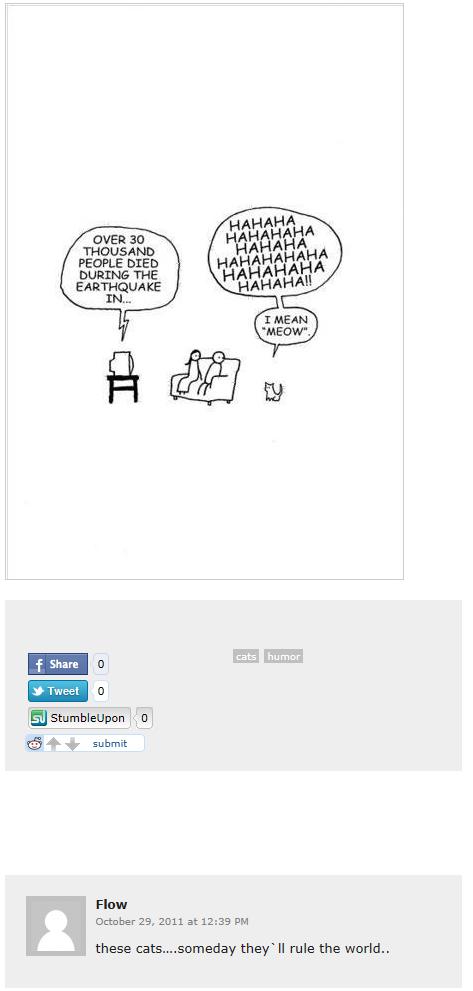 Τώρα είδα τα νέα σχόλια πάνω στο συγγραφικό μου best seller :p Ευχαριστώ πάρα πολύ. Και, βεβαίως, το κυρίαρχο είδος ήταν οι γάτες. Ποιο άλλο άλλωστε;